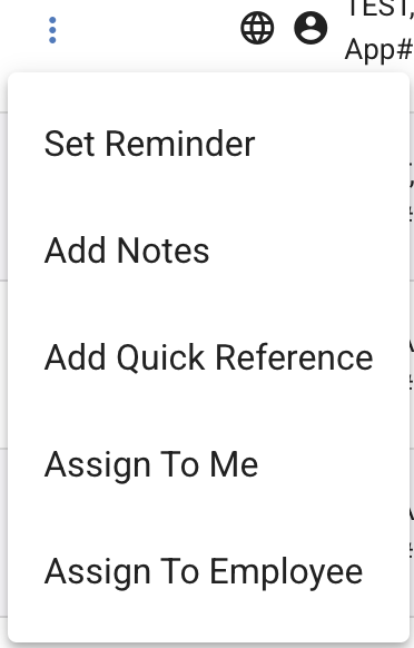 Assigning the application to yourself or someone else can also be executed by clicking the ellipsis to the left of the application and clicking either "Assign to Me" or "Assign to Employee".