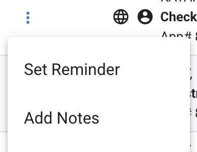 To create a reminder from the Dashboard page, click the ellipsis to the right of the pencil. If you're on the application page, click the hamburger icon located at the top-right of the page.